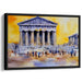 The temple's majestic columns and intricate architecture are meticulously portrayed, showcasing the artist's skill in bringing historical landmarks to life. In the foreground, a lively crowd depicted with loose, impressionistic strokes infuses the scene with movement, hinting at a bustling atmosphere that adds depth and narrative to the composition.