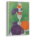 Introducing "Dynamic Emotions: Bold Colors and Dynamic Forms," a captivating still life canvas art print that mesmerizes viewers with its vibrant hues and energetic composition. This masterful artwork showcases a dynamic interplay of colors and shapes, featuring a white vase, a cluster of oranges, and deep purple objects that exude a mix of abstract and tangible forms.