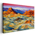 Step into the mesmerizing world of 'Echoes of Altitude: A Vivid Interpretation of Mountainous Terrain,' a captivating landscape canvas art that encapsulates the essence of rugged mountain ranges in a burst of vibrant colors and expressive brushwork. This exquisite piece showcases a striking display of bold, angular ridges painted in a harmonious palette of ochre, beige, and soft whites in the foreground, contrasting dramatically with the fiery oranges and reds of the distant peaks, while the serene sky in blues and hints of violet adds a cooling balance.