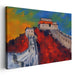 Introducing 'Echoes Of Ancient Guardians,' a mesmerizing canvas art that transports viewers to the awe-inspiring realm of the Great Wall of China, blending history with imagination in a vivid and dynamic portrayal. This captivating artwork captures the grandeur and historical significance of the iconic structure, stretching diagonally across the canvas with ancient bricks in shades of beige and gray, standing out against the vibrant and surreal backdrop.