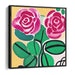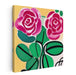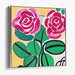 Introducing "Echoes of Blooming Petals," a captivating canvas art featuring two vibrant roses that command attention with their bold, pink petals. The artist has skillfully rendered the roses in a simplified, almost abstract style, using thick, black outlines to create a modern, graphic look.