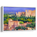 Introducing "Echoes of Past Splendor: A Dreamy Landscape of Historical Grandeur," a captivating canvas art piece that transports viewers to an ancient fortress nestled amidst a picturesque landscape, exuding a sense of tranquility and nostalgia. This artwork features a majestic fortress, reminiscent of the Alhambra in Granada, Spain, standing tall with its intricate architecture and towering walls.