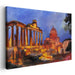 Introducing 'Echoes of Time and Light: Sunset Over Ancient Architecture,' a mesmerizing canvas art print that transports viewers to a bygone era, where the grandeur of ancient ruins basks in the warm embrace of a sunset's glow. This captivating artwork immerses you in a scene dominated by rich hues of orange and gold, showcasing the majestic remnants of classical architecture reminiscent of the grandeur of the Roman Forum or similar historic sites.