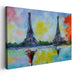 The artwork showcases bold and expressive brushstrokes that seamlessly blend a kaleidoscope of colors, infusing the scene with energy and movement. The central focus on the majestic Eiffel Tower, depicted twice, creates a captivating visual dialogue within the composition, offering a unique and introspective viewing experience.