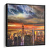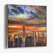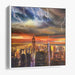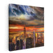 Introducing the mesmerizing canvas art, 'Electrifying Skyline: Dramatic Cityscape Under Stormy Skies,' a visual symphony of urban grandeur set against the backdrop of a brooding tempest. This captivating artwork transports viewers into a bustling cityscape, likely inspired by the iconic New York City, where skyscrapers like the Empire State Building and the One World Trade Center dominate the skyline under a tumultuous sky.