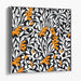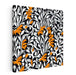 The bold orange hues strikingly contrast against the deep black, all set against a pristine white background, creating a visually stunning composition. The use of orange infuses the artwork with warmth and energy, making it a vibrant centerpiece that commands attention.