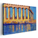 Introducing "Elysium Illusion," an enchanting canvas art print that transports viewers to the grandeur of an ancient Greek temple, reminiscent of the iconic Parthenon. This masterpiece bathes the temple in a warm, golden glow, accentuating its majestic columns that proudly pierce the serene, azure sky.