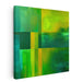 Introducing 'Emerald Geometry Dance,' an abstract geometric canvas art print that mesmerizes with its vibrant hues and dynamic patterns, creating a contemporary aesthetic that is both captivating and thought-provoking. This artwork is a visual symphony dominated by lush greens and vibrant yellows, showcasing a series of interlocking rectangular and square forms that evoke depth and movement.