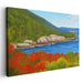 Immerse yourself in the tranquil beauty of "Emerald Outlook," a lush landscape canvas art print that transports you to a serene coastal haven where nature's splendor unfolds in breathtaking detail. This captivating artwork captures the essence of a coastal oasis, where a vivid blue sky meets a deep azure sea, enveloping viewers in a scene of unparalleled tranquility.
