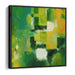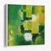 The focal color palette of this piece revolves around a lush and vibrant green, reminiscent of nature's tranquility and serenity. Accentuating this verdant green are pops of lively yellow and crisp white, forming a dynamic interplay that infuses the composition with energy and contrast. The blending of these hues orchestrates a sense of depth and motion, encouraging viewers to delve into the intricate layers of the painting.