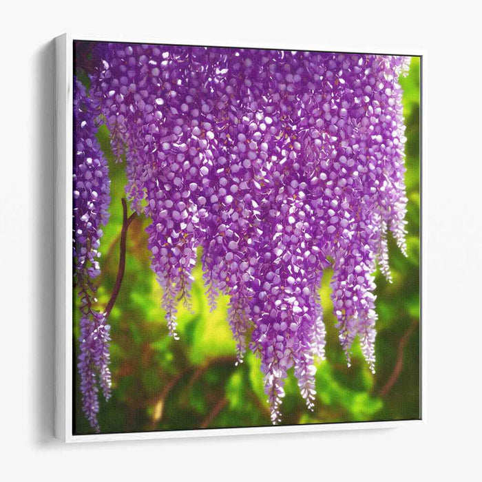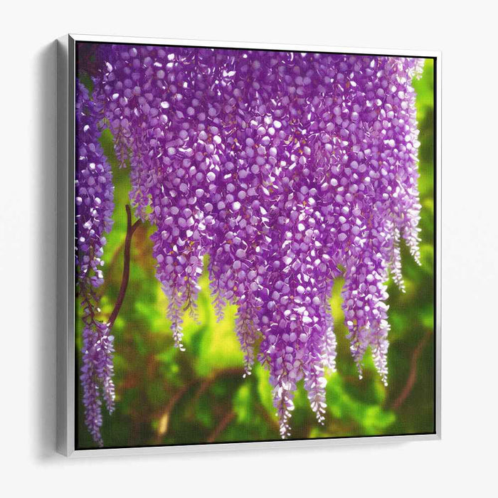 Introducing "Enchanted Blossom Dream: Realistic Purple Floral Canvas Art Print," a captivating masterpiece that celebrates the enchanting beauty of blooming wisteria flowers. This exquisite artwork transports viewers into a realm of natural splendor, where clusters of purple wisteria blossoms take center stage in a mesmerizing display of color and detail.