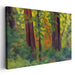 The canvas art showcases a harmonious blend of colors, with the towering redwoods dominating the scene in various shades of green, from deep emerald to soft moss. The background is a dance of amber and sienna, mimicking the play of light and shadow within the forest, while touches of ochre add a touch of warmth and earthiness to the overall composition.