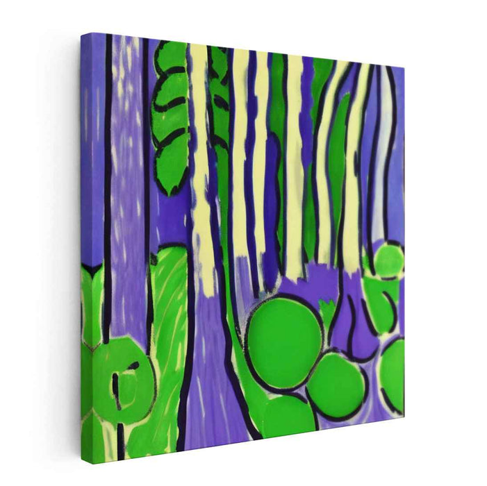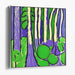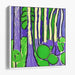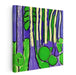 Enchanted Neon Woodland Oasis: Vibrant Purple and Green Abstract Forest Canvas Art
