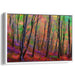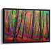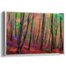 Step into the mesmerizing world of "Enchanted Twilight Whispers: Vibrant Woodland Sunset" canvas art print, where nature's splendor unfolds in a kaleidoscope of colors, inviting you to immerse yourself in a realm of enchantment and tranquility. This captivating artwork captures a dense woodland, with tall, slender trees stretching towards the sky, their dark-hued trunks and branches standing out against the vivid backdrop.