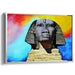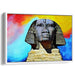 Introducing "Enigma of Ancient Realms," a mesmerizing canvas art print that skillfully merges the ancient allure of the Sphinx of Giza with a contemporary artistic flair, creating a visually striking and enigmatic masterpiece. This artwork focuses on the Sphinx's enigmatic countenance, portrayed in a hyper-realistic style, juxtaposed against a backdrop of vibrant, abstract swirls in blues and oranges, exuding a sense of modern dynamism.