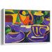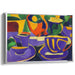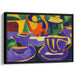 Step into the vibrant realm of 'Enigmatic Chroma Harmony: A Modernist Symphony in Purple and Green,' an enthralling canvas art print that encapsulates the essence of modernism within your living space. This artwork showcases a captivating composition of abstracted still life elements, predominantly featuring geometrically stylized cups and saucers. The use of bold, saturated colors and dynamic shapes crafts a visually stimulating experience.