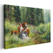 Introducing 'Equine Serenade,' a mesmerizing canvas art piece that transports you to a tranquil and idyllic moment in nature. This enchanting artwork portrays a young woman in a flowing white dress, gently interacting with two majestic horses near a serene stream, enveloped by lush greenery and vibrant wildflowers.