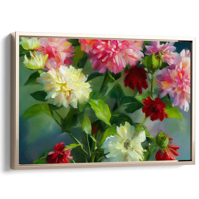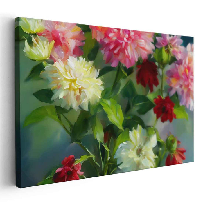 Ethereal Blossom Symphony: Lifelike Blooming Bouquet Canvas Art