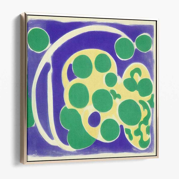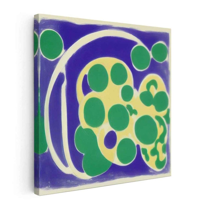 Introducing "Ethereal Colorful Circles Dance: Abstract Blue, Green, and Yellow Circle Composition," a mesmerizing abstract canvas art that immerses the viewer in a lively interplay of vivid colors and dynamic shapes. This captivating piece is set against a regal blue backdrop, adorned with a series of interlocking circles in vibrant green and gentle yellow hues.