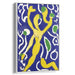 Introducing 'Ethereal Dance in Blue and Yellow,' a mesmerizing canvas art that transports viewers into a world of vibrant movement and color, capturing a moment of grace and dynamism. This captivating artwork features a central figure elegantly dancing in a radiant shade of yellow against a backdrop of deep, enchanting blue.