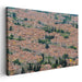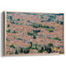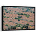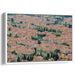 Introducing "Ethereal Echoes of Old Cobblestones," a mesmerizing canvas art piece that offers a bird's eye view of a historic cityscape, weaving a tale of architectural grandeur and urban charm. This artwork presents a rich tapestry of traditional buildings with terracotta roofs, creating a cozy, earthy color scheme that blends harmoniously with hints of green from scattered trees and the gentle blue of a winding river meandering through the city.