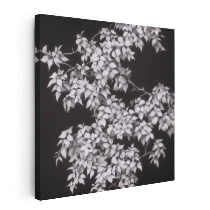 Introducing "Ethereal Leaves," a mesmerizing still life canvas art that captures the delicate beauty of nature in a serene and minimalist portrayal. This exquisite artwork focuses on a graceful branch adorned with a profusion of leaves, depicted in a captivating monochrome palette that exudes elegance and sophistication.