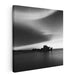 Introducing "Ethereal Midnight Horizon: Monochrome Seascape Under Starry Night," a captivating canvas art piece that transports viewers to a tranquil and ethereal seascape, bathed in monochromatic tones that evoke a sense of calm and introspection. The artwork's focal point is a rugged rock formation emerging from the smooth, reflective surface of the water, creating a striking contrast against the serene sea.