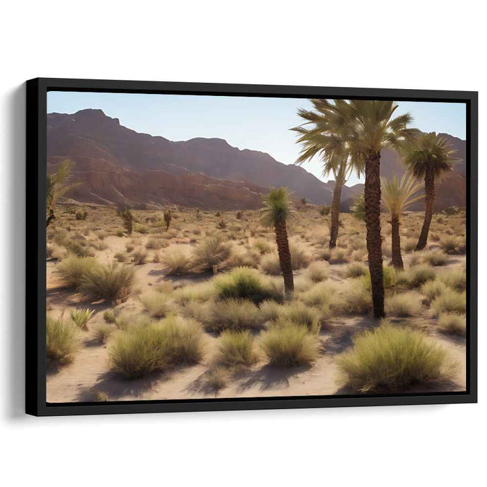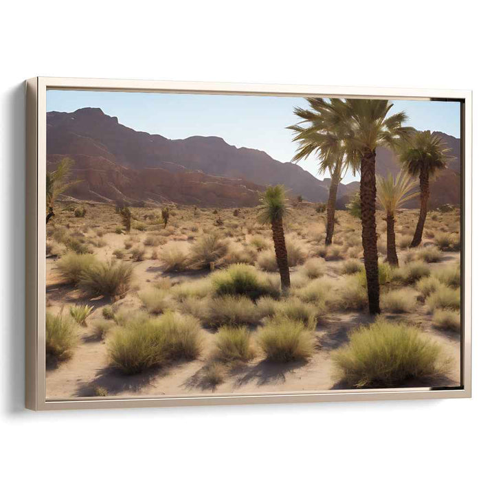 Immerse yourself in the beauty of this contemporary landscape canvas art print, inspired by the realism of artists like Albert Bierstadt and the Hudson River School. Add a touch of sophistication to your decor with this museum-quality piece that captures the essence of a serene desert oasis, inviting you to unwind and reflect in its peaceful ambiance.