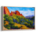 Introducing 'Ethereal Scarlet Eden Glow: Vibrant Red Rock and Lush Greenery,' a mesmerizing landscape canvas art that immerses viewers in a sun-soaked desert oasis, where majestic red rock formations tower against a brilliant azure sky. This captivating artwork captures the essence of the desert's warmth and vibrancy, with the striking hues of the rock formations stealing the spotlight.