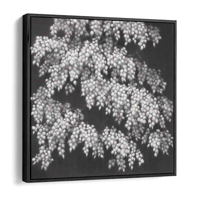 Introducing 'Ethereal Shadows Dance Alone: Monochrome Nature Canvas Art Print,' a mesmerizing monochrome masterpiece that captures the delicate beauty of floral blossoms in exquisite detail. This captivating artwork, set against a dramatic black backdrop, showcases nature's intricate elegance through a grayscale palette, highlighting the fine textures of leaves and petals.