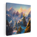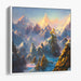 Introducing 'Ethereal Summit Harmonies: Golden Peaks in Serene Blue Mountain Landscape,' a captivating canvas art that transports viewers to a realm of awe-inspiring mountain grandeur bathed in the ethereal light of dawn. This breathtaking piece showcases majestic peaks reaching towards the heavens, their rugged beauty softened by the golden hues of the rising sun, creating a serene yet powerful contrast.