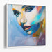 Introducing 'Expressive Spectrum Portrait,' a mesmerizing canvas art print that beautifully captures the essence of a woman through a captivating blend of realism and abstract art. This stunning artwork focuses on the subject's face with intricate, lifelike precision, set against a backdrop of swirling abstract colors that infuse the piece with energy and vibrancy.