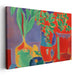 Introducing "Fauvist Bounty Study," a captivating Fauvist-inspired still life canvas art print that mesmerizes viewers with its explosive colors and dynamic forms, transporting them into a world of abstracted beauty. This masterful artwork features a bold representation of vases and foliage, depicted in a strikingly bold style reminiscent of Fauvism.