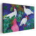 This artwork radiates serenity and joy, evoking the peacefulness of nature and the playful essence of these magnificent birds. Its style echoes Post-Impressionism, with a bold use of color and expressive brushwork reminiscent of renowned artists like Henri Rousseau and Paul Gauguin.