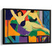 Introducing 'Feminine Gestures,' an electrifying canvas art print that encapsulates the essence of abstract expressionism with its vibrant colors and dynamic forms. This captivating artwork features two female figures, one prominently reclining in the foreground, elegantly outlined in soft, flowing lines amidst a backdrop of bold geometric shapes and blocks of intense color.