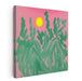Ferns in Blush: Abstract Green Foliage on Pink Canvas Art Print