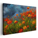 Step into the enchanting world of 'Fiery Blossoms: A Luminous Impressionist Floral Landscape,' an exquisite canvas art that transports you to a vibrant field of fiery orange and red poppies swaying under a dramatic sky of rich blues and subtle greens. This mesmerizing artwork skillfully employs impressionist techniques, using bold, swift brushstrokes to capture the play of light and color, infusing the flowers with a sense of vitality and motion.