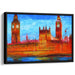 Introducing 'Fiery Parliament: Expressionist London Landmark,' a vibrant canvas art print that captures the iconic Houses of Parliament in London with a bold and expressive style, bringing movement and energy to this historical scene. The artwork features the instantly recognizable clock towers, including the famous Big Ben, depicted in a dynamic composition that exudes warmth and vitality.