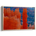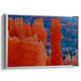 Introducing 'Fiery Spires at Dusk,' a mesmerizing canvas art piece that encapsulates the grandeur of a rugged landscape akin to the renowned Bryce Canyon. This artwork portrays towering spires and hoodoos basking in the warm embrace of the early morning or late afternoon sun, creating a spectacle of fiery oranges blending into deep blues and soft purples.