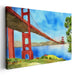 Introducing 'Fleeting Rays Over Rust,' a mesmerizing canvas art piece that captures the iconic Golden Gate Bridge in a vibrant watercolor style, pulsating with vivid hues and fluidity. This artwork showcases the bridge's grandeur with its towering pillars and sweeping cables, dominating the composition in striking shades of red and blue.