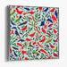 'Flight of Fantastical Flora' pays homage to mid-20th-century modernist movements, drawing inspiration from Scandinavian design and American folk art. The artwork's use of flat color blocks and clean lines reflects a minimalist aesthetic, reminiscent of renowned artists like Charley Harper and Alexander Girard.