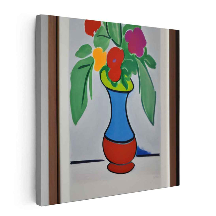 Floral Elegance in Modernist Vase: Bold Color Pop Art Canvas