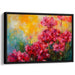 The artist's bold and expressive brushstrokes infuse the piece with a sense of movement, capturing the dynamic nature of the floral arrangement. The rich, saturated hues of red and pink in the flowers, complemented by hints of green foliage, stand out vibrantly against the warm, glowing background, creating a stunning visual contrast.