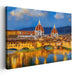Introducing 'Florentine Splendor: Illuminated Reflections of the Duomo,' a mesmerizing landscape canvas art that transports viewers to the enchanting skyline of Florence, Italy. This captivating artwork beautifully captures the iconic red-tiled domes and historic architecture of Florence, featuring the majestic Florence Cathedral, also known as the Duomo, and the impressive Basilica of San Lorenzo.
