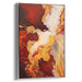 The canvas comes alive with streams of molten gold and bright orange swirling through the vibrant red, creating a palpable sense of movement and energy. These colors mimic the fluidity of lava or the cosmic dance of nebula clouds, infusing the piece with a dynamic and otherworldly essence. Subtle white and grey accents provide contrast and depth, guiding the eye across the composition with strategically placed highlights.