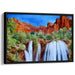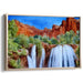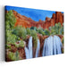 Introducing 'Flowing Mirage Dreamscape,' a breathtaking canvas art print that transports you to the tranquil embrace of nature's grandeur, capturing the essence of a cascading waterfall framed by towering red rock cliffs. This masterpiece skillfully painted in acrylic on canvas exudes a sense of peace and awe, inviting you to immerse yourself in its vivid beauty.