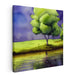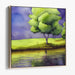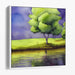 Introducing "Foggy Glass Waters," a mesmerizing watercolor canvas art print that captures the essence of serene landscapes with a focus on a majestic green tree standing by a reflective body of water. This artwork immerses viewers in a scene of natural tranquility, inviting them to experience the beauty and calmness of nature.