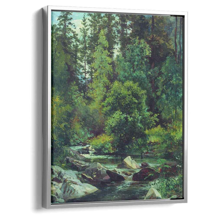 Step into the heart of nature's symphony with Ivan Shishkin's captivating masterpiece, "Forest River." Created in 1890 at the height of his artistic prowess, this breathtaking panorama now comes to life as a high-quality canvas print, inviting you to lose yourself in its serene embrace.