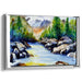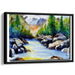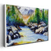 Introducing the enchanting "Forest Veil Glow: Serene Forest Landscape Canvas Art Print," a mesmerizing painting that whisks you away to a peaceful mountain stream nestled in a verdant forest oasis. This captivating artwork showcases a picturesque scene dominated by majestic evergreen trees that encircle a tranquil, meandering river. In the backdrop, snow-capped mountains stand regally, creating a stunning contrast against the lush greenery.