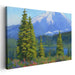 Introducing 'Frozen Echoes Amongst Pine Silhouettes: Snow-Capped Peak and Verdant Pines,' a mesmerizing landscape canvas art that beckons viewers into a tranquil mountain vista, where a grand snow-capped peak stands prominently against the clear azure sky. This captivating painting captures a serene wilderness scene, where lush pine trees with meticulously depicted green needles adorn the foreground, harmoniously contrasting with the distant cool blues of the mountain range.